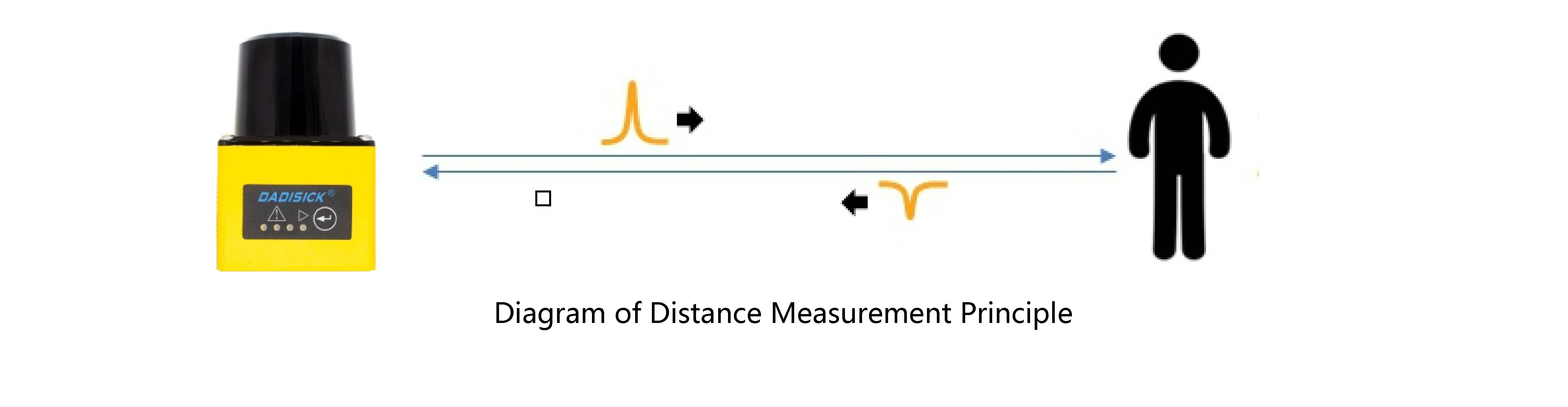 LD-05D は TOF (Time of Flight) レーザー スキャナーです。そのコア コンポーネントには、光学系、機械系、回路、ソフトウェアが含まれます。動作中、レーザー スキャナーは物体に反射するビームを放射します。受信機は反射光信号を検出し、時間分析モジュールは放射光と反射光の間の時間差を測定します。この時間を光速で乗算すると、物体までの距離が計算され、図に示すように物体の位置を特定できます。